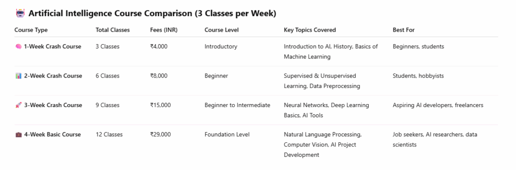 The AI course typically lasts for 8 to 12 weeks, with flexible learning options to accommodate your schedule.