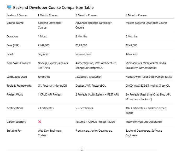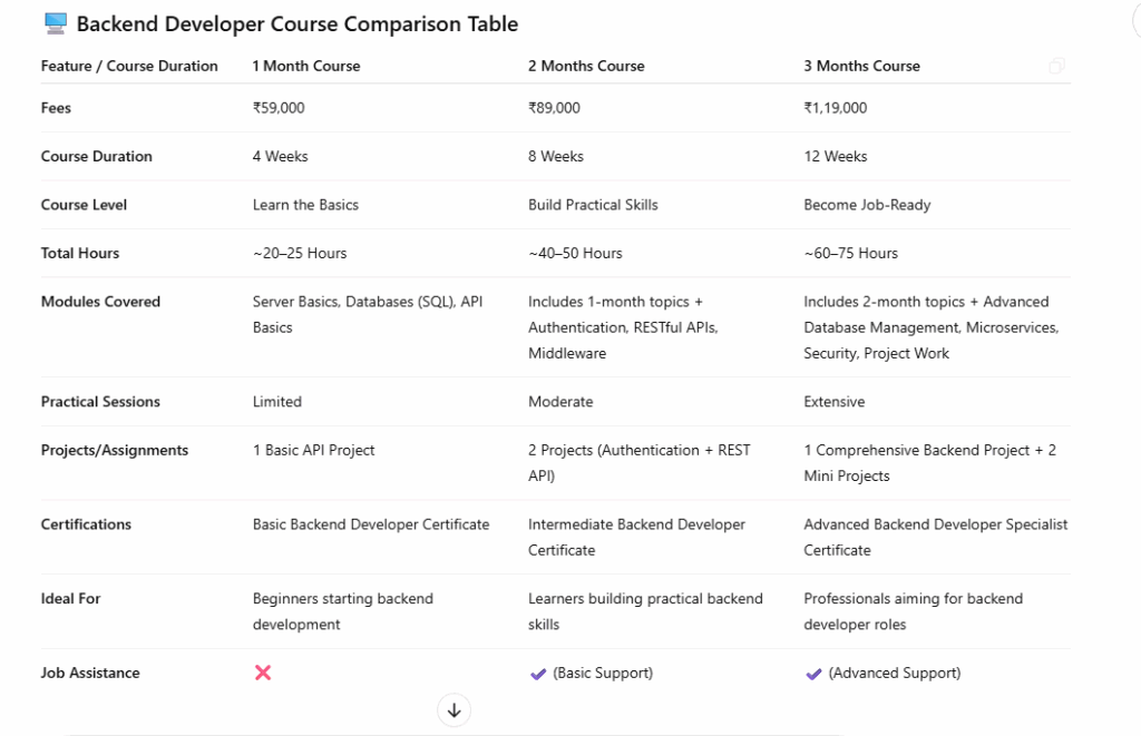 Are you looking to become a skilled backend developer? Our Backend Developer Course is designed to help you master server-side programming, database management, API development, and cloud integration. This course will teach you how to build scalable and secure web applications using top programming languages like Node.js, Python, and Java.One of the biggest advantages of this course is learning how to design efficient databases with SQL and NoSQL technologies like MySQL, PostgreSQL, and MongoDB. You’ll also gain expertise in RESTful and GraphQL API development, enabling smooth communication between frontend and backend systems.