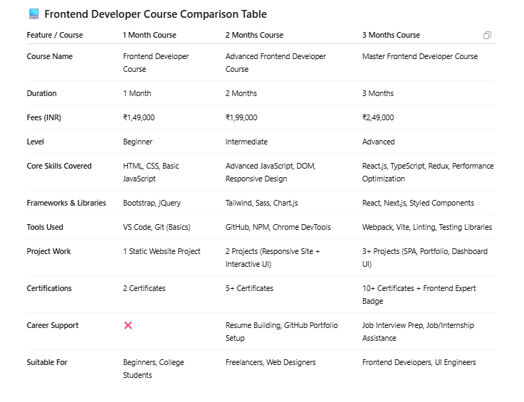 Joining our Frontend Developer Course is an excellent decision for anyone looking to start a career in web development. This course offers a comprehensive curriculum that covers essential skills, including HTML, CSS, and JavaScript, which are the building blocks of web design. You’ll gain hands-on experience with popular frameworks like React and Angular, enabling you to create dynamic, responsive web applications that enhance user experience.