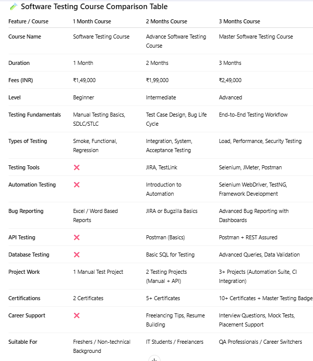 Our Software Testing Course is the perfect choice for anyone looking to build a successful career in software quality assurance. With the increasing demand for reliable software, mastering testing skills has never been more crucial. This course provides hands-on training with industry-leading tools and techniques, ensuring you gain practical experience that employers value.